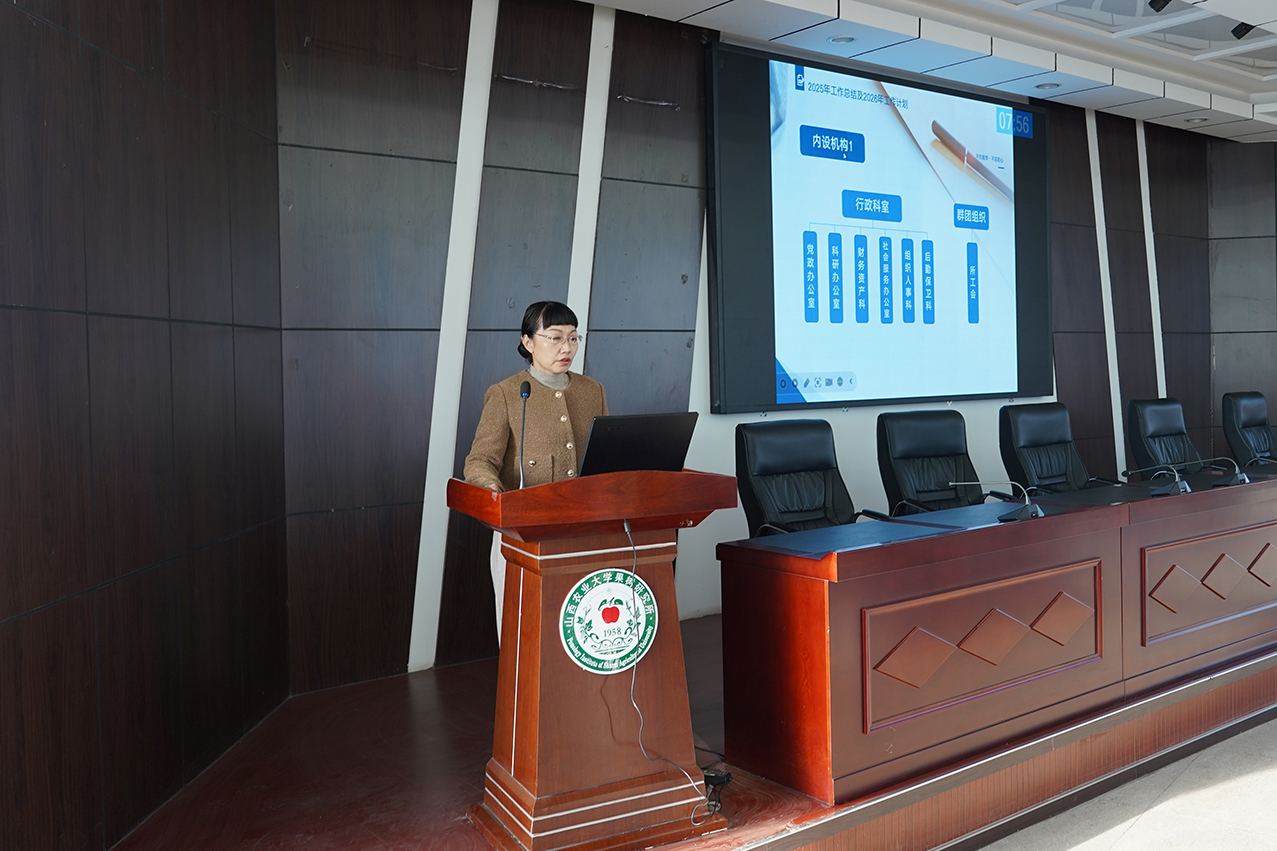 1月13日,果树研究所召开2025年度工作总结会暨工会会员大会。会议采取线上线下相结合方式召开。所领导、行政科室副科以上人员、科研团队、研究室、编辑部、实验室负责人、副高职称以上人员、近五年新进人员在现场参加了会议,其他职工以视频形式参加会议。