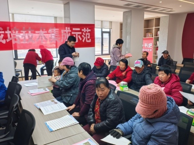 培训期间,科研人员精准对接当地产业需求,在王曲村围绕扁桃优良品种筛选及配套栽培技术集成示范技术开展专题培训,系统讲解扁桃营养价值、产业发展前景、主推优良品种特性及高产栽培关键技术,并向参训果农发放《扁桃生产技术规程》山西省地方标准手册、新品种宣传彩页、栽培管理要点资料,以及粘虫板、生根粉等农资物资。
