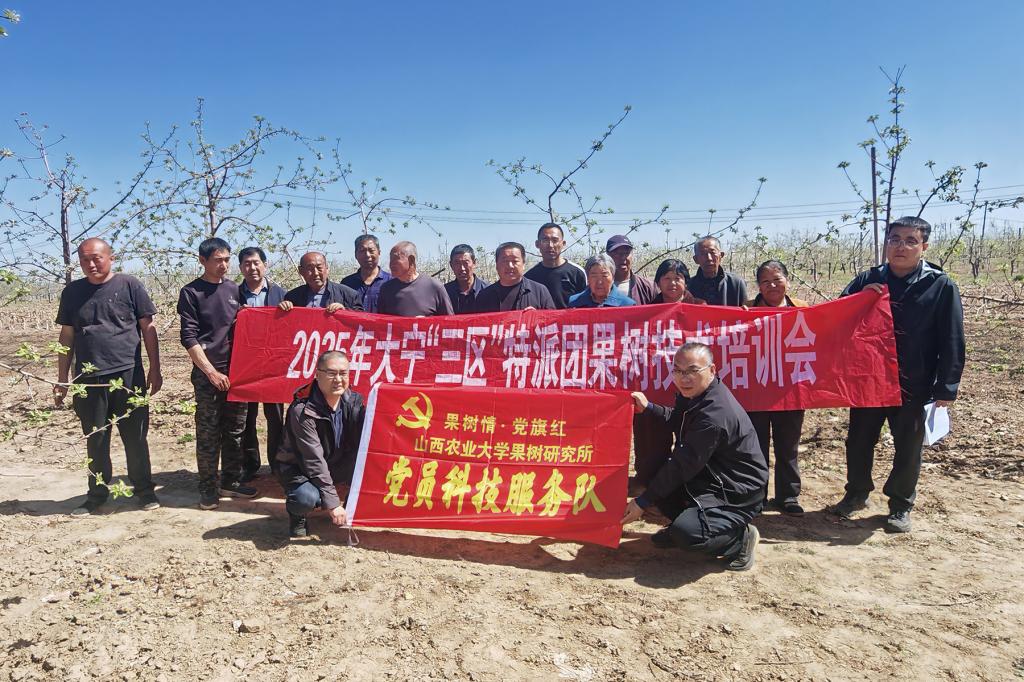 4月9—10日,山西农业大学果树研究所砧木种质创制与利用团队、(大宁)苹果产业研究院副研究员蔡华成、王骞一行,深入大宁县开展实地技术服务活动。专家团队立足“果树情·党旗红”品牌建设初心,坚守科技助农、服务为民的使命,深入各果园区,查看不同园区果树生长态势,细致询问果农在春季管理中遇到的难点堵点问题,做到精准对接需求、靶向破解难题,为当地宁粹果农提供精准及时的春季果园管理技术指导,将党建引领与科技助农深度融合,切实把技术服务送到田间地头、把温暖关怀送到果农心中。服务期间,蔡华成结合当前果树物候期与树相实际,围绕春季精细化修剪、病虫害绿色综合防控等关键技术,通过“理论讲解+现场实操”的方式,进行系统细致的讲解和规范的操作示范,手把手指导果农掌握疏枝、调势、提质的核心要领,切实提升果农实操能力,助力果园精细化管理提质增效,彰显“果树情·党旗红”品牌的技术服务优势。王骞聚焦果园土壤健康与肥水高效利用核心需求,就春季施肥方案、水分管理及土壤改良措施进行详细拆解指导,针对果农在施肥种类、用量、时期及灌溉过程中遇到的具体问题,逐一耐心解答、现场支招,切实解决果农急难愁盼问题,让“果树情·党旗红”品牌真正扎根基层、服务果农。此次技术服务紧扣农时、靶向精准,不仅有效破解了果农在春季果园管理中的实际技术难题,提升了当地果园标准化、精细化管理水平,为苹果产业稳产提质、果农持续增收提供了有力的科技支撑,更以实际行动深化“果树情·党旗红”品牌建设,推动党建与地方苹果产业发展同频共振、互促共进。此次活动是果树研究所依托“果树情·党旗红”品牌,积极推动科技成果转化、服务地方特色产业发展、助力乡村全面振兴的又一次具体实践,进一步彰显了高校党建引领科技助农的责任与担当,为后续持续深化校地合作、赋能苹果产业高质量发展奠定了坚实基础。