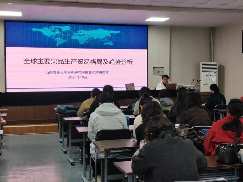 整场报告会立足全球产业视野,紧扣果品产业发展实际需求,以扎实实证数据为支撑、严谨逻辑框架为依托、深度机制分析为核心,不仅为科研人员搭建了洞悉全球果品产业前沿动态、开展学术交流与成果共享的高端学术平台,更为后续相关领域的理论创新、技术研发及产业政策制定提供了兼具科学性与实践价值的学术参考和决策支撑。此次报告会有效拓宽了科研人员的研究视野,为后续开展果品产业相关研究提供了清晰思路与数据支撑。未来,山西农业大学果树研究所将持续常态化举办学术交流活动,推动果品产业研究工作走深走实。